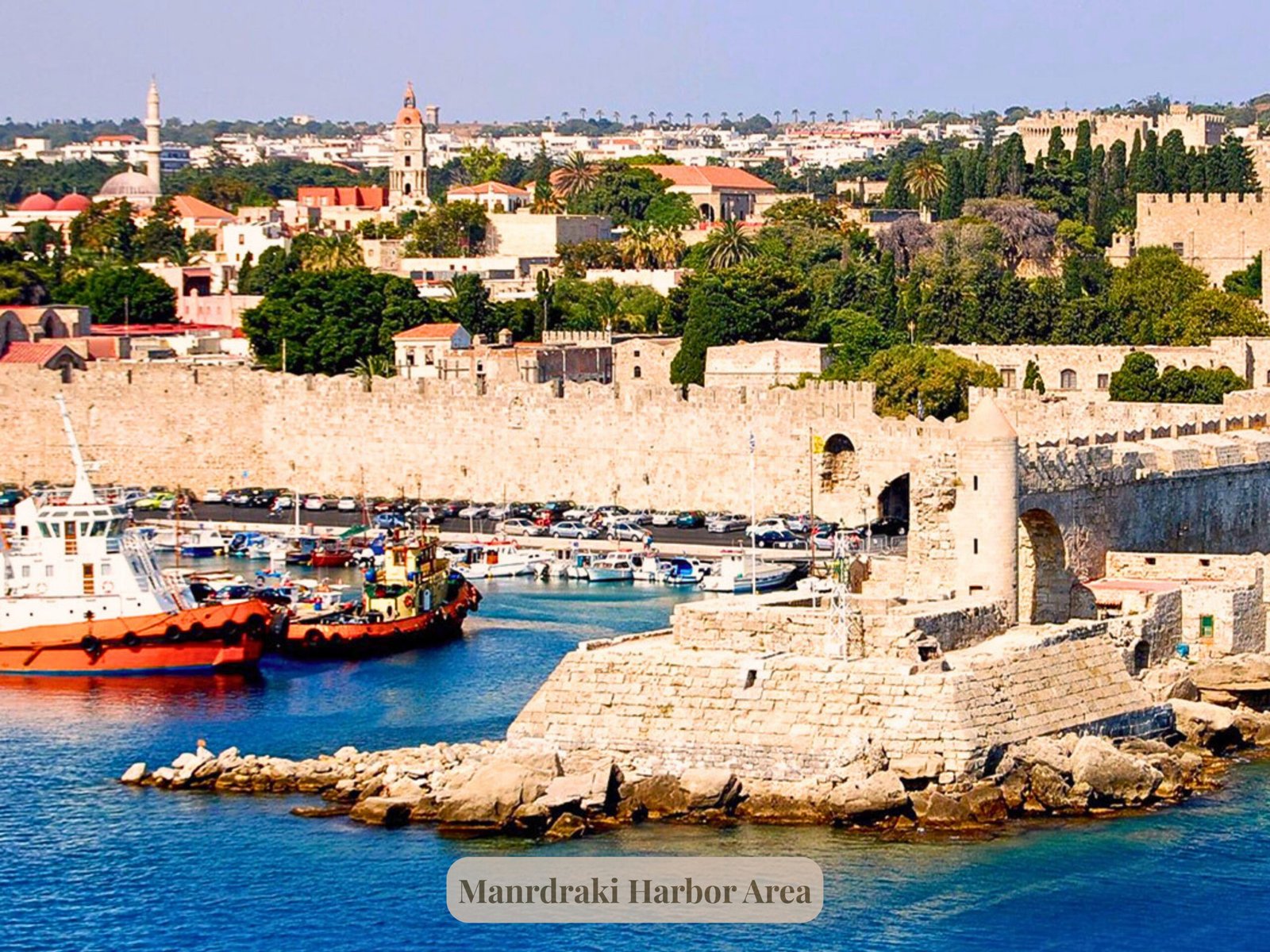 Continue toward the historic Mandraki Harbor area, where the legendary Colossus of Rhodes once stood – one of the Seven Wonders of the Ancient World.