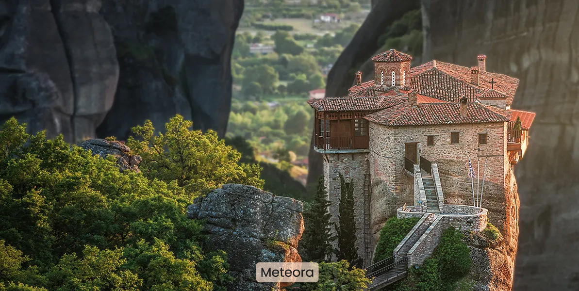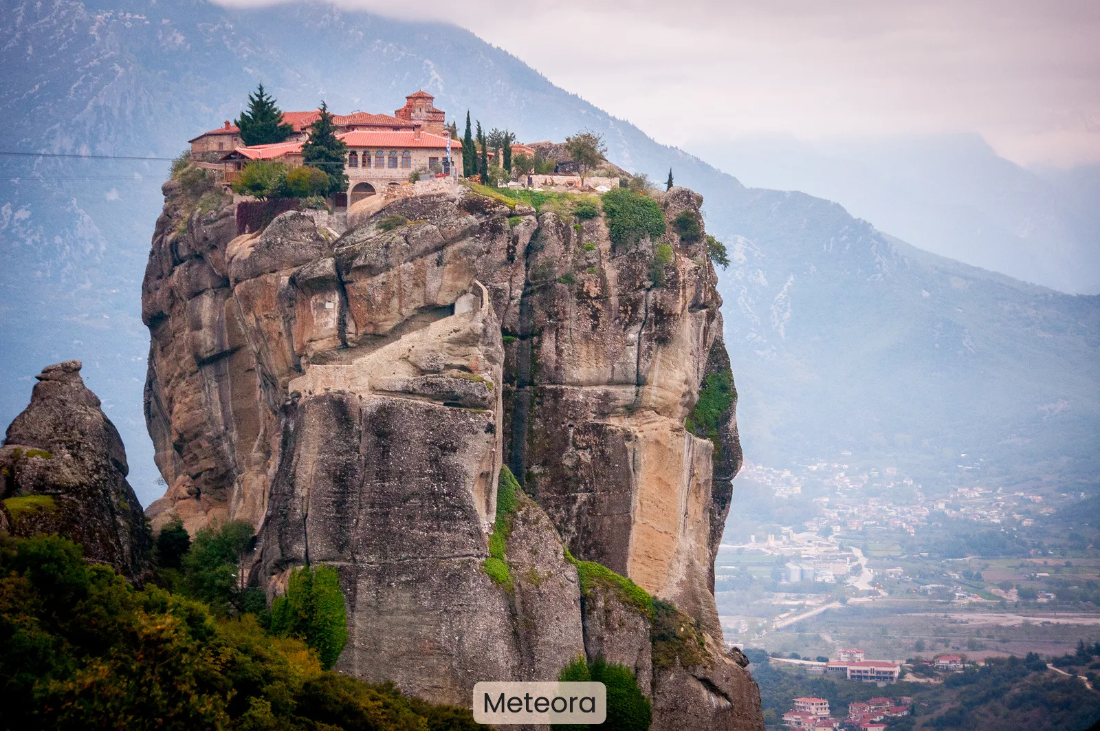 Explore the remarkable monasteries of Meteora, perched atop towering rock pillars.
